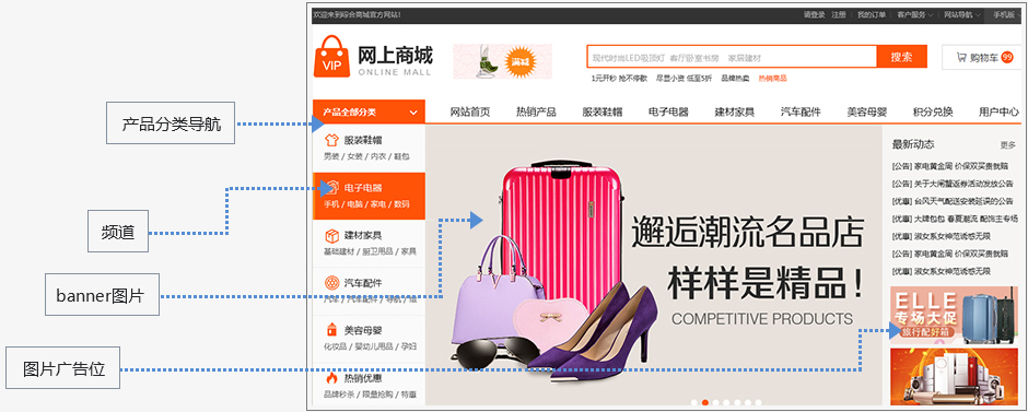 首页导航,全类目频道,轮播banner,广告位招商。秒杀、热推、新品,应有尽有,琳琅满目。